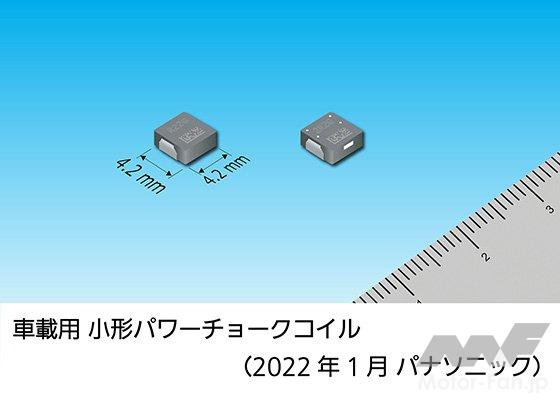自動車の電子化・電動化が進み、多くの車にECUが搭載されている。ADASおよび自動運転には、高度な自動車制御を行うECUが数多く必要になり、接続不良がない高性能で小型のパワーインダクタが求められている。そこでパナソニックは、メタルコンポジット材[2]を一度溶融させ細部まで充填する成形技術により、振動に強くクラックの発生を防ぎ、コイルのリード部を冗長設計[3]にして接続信頼性を高めた4mm角サイズの「車載用小形パワーインダクタ」を製品化した。同製品は、製造工程の改善により、生産に伴うCO2排出量を50%削減した(CO2排出量/個)。