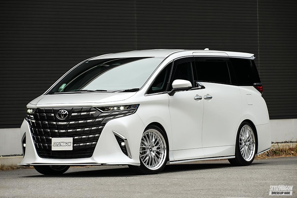 東京オートサロン2024のスタイルワゴンブースに展示した新型アルファードは、千葉県の「ティースタイル」と、北海道の「ユニバーサル」という2店舗がコラボして開発した出来立てホヤホヤの「クラッシーマジック」エアロをセットアップした1台。
