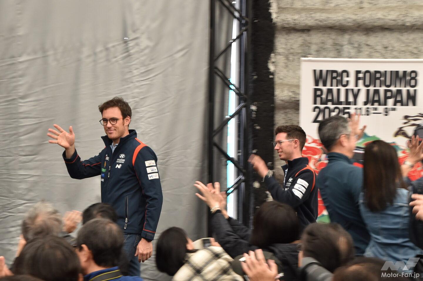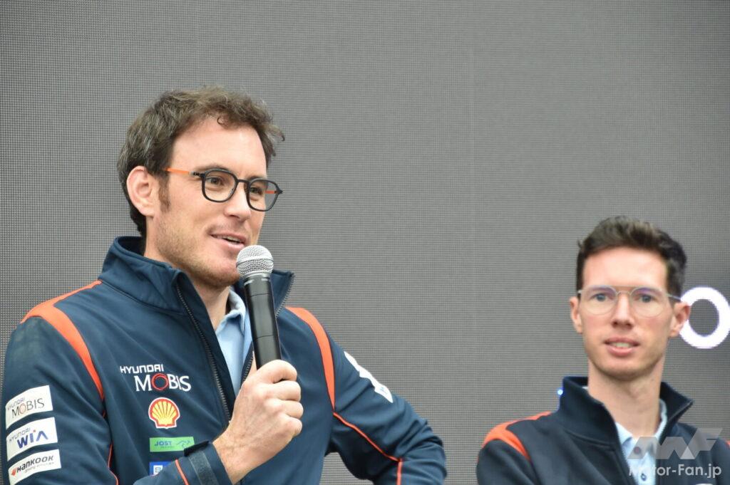 ここのところ毎年ウェルカムイベントに参加しているのが、ヒョンデ・モータースポーツ(以下ヒョンデ)のティエリー・ヌービルとマーティン・ヴィーデガ選手。会場の雰囲気にも慣れており、ファンの声援に積極的に応えていた。