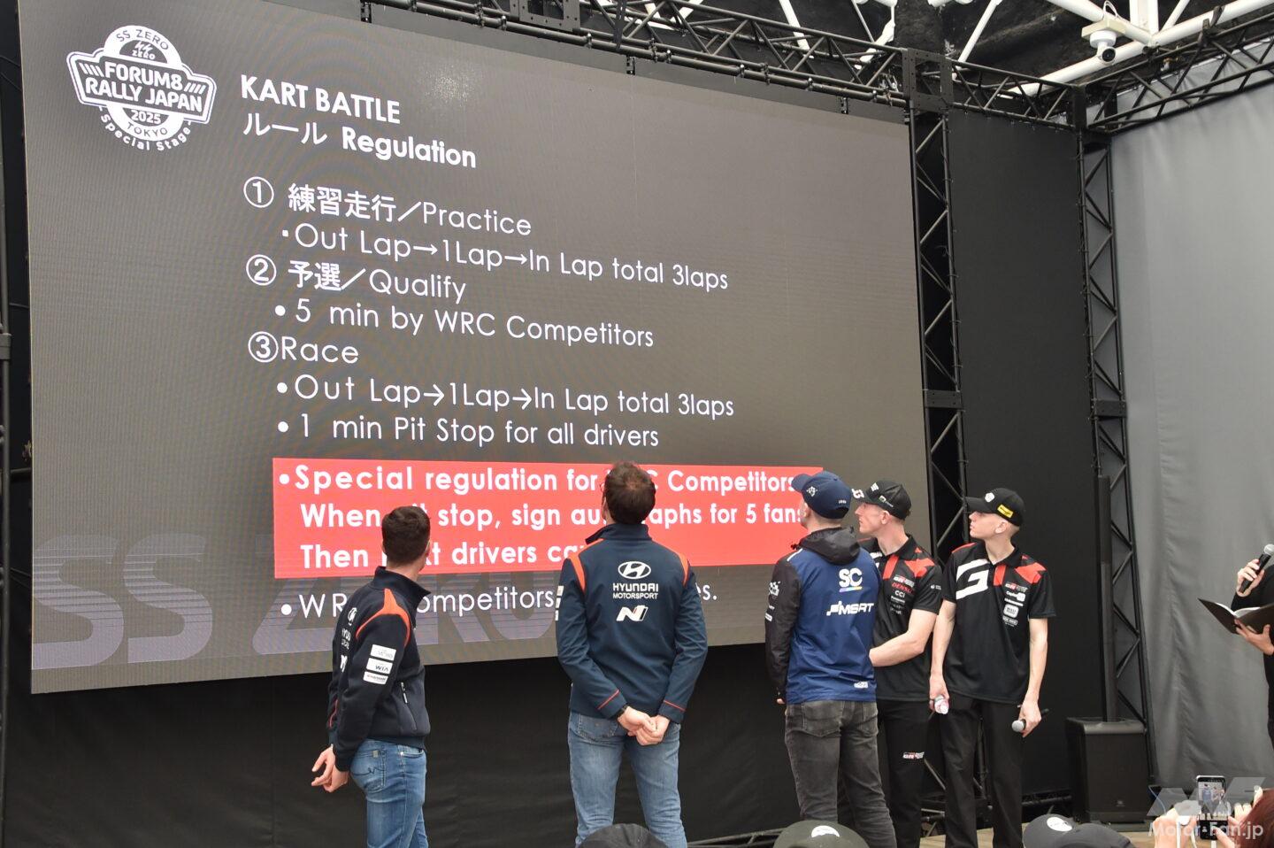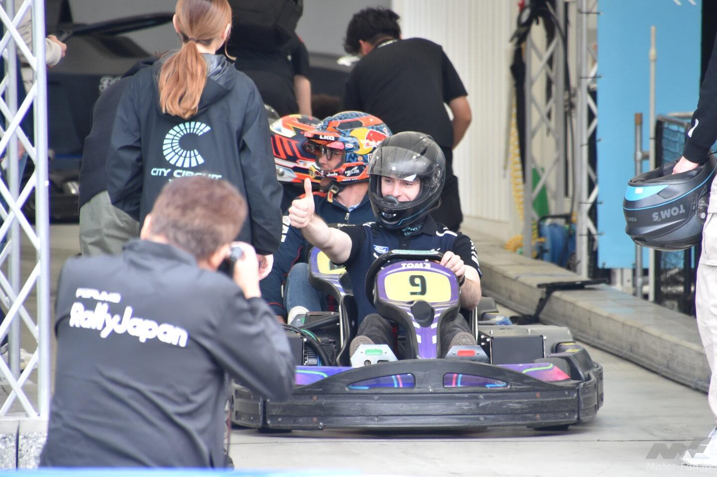 ウェルカムイベントはラリージャパンが復活してから恒例となっており、2024年は六本木でのクラブイベント&レーシングシミュレーターバトル、2023年は同じくシティサーキット東京ベイでカート対決を実施。2025年は2年ぶりのカートバトルとなった。