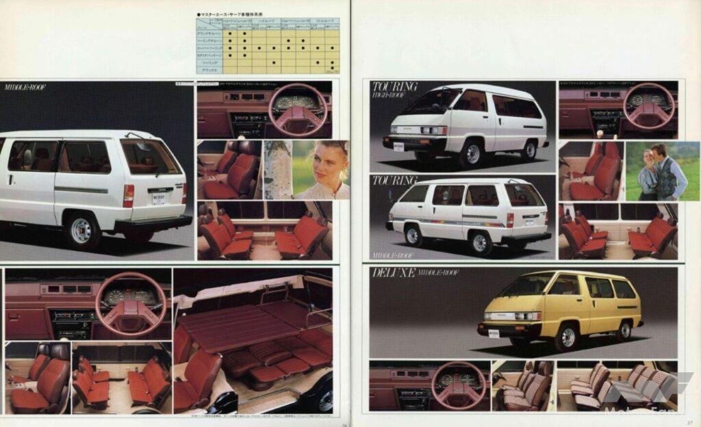 1980年代のキャブオーバー型ワゴンのタウンエースやマスターエース・サーフが従来のビジネスユースから少しずつレジャーユースへと舵を切り始めた。この流れが、その後の「タウンエース・ノア」や「エスティマ」、ホンダ「オデッセイ」へと引き継がれ、1990年代後半の本格的なミニバン時代へと発展したのだ。