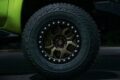 さらにオフロードバンパー、カーボンファイバーベントを備えたセイボン社製アフターマーケットボンネット、Z1ルーフラック、シュノーケルを装備。LEDライトが、力強いルックスを完成させている。足まわりにはブロンズカラーの17インチNISMOビードロック、ホイールには33インチのハンコック・ダイナプロAT2エクストリームタイヤを装着して、力強い佇まいを完成させている。