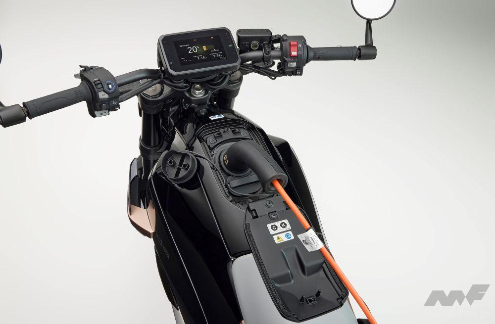 ボディカラーはブラックを基調とし、ゴールドパーツをアクセントに使用。電動二輪専用の新たなカラースキームとして、今後グローバル展開される予定だ。
