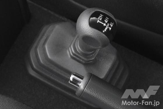 また、機械式副変速機付きパートタイム4WDシステムは路面状況に合わせて2WDと4WDとを任意に切替えて走行できることはもちろん、4WDでは4H(高速)と4L(低速)のモードに切替えが可能で、4Lは、通常の約2倍の駆動力を発揮し、急な登坂路や悪路の走破性を高めますが、4代目ではブレーキLSDトラクションコントロールを全車標準装備としたことで、4Lモード走行時、エンジントルクを落とすことなく、空転した車輪にだけブレーキをかけることでもう一方の車輪の駆動力を確保し、高い脱出性能を実現しています。