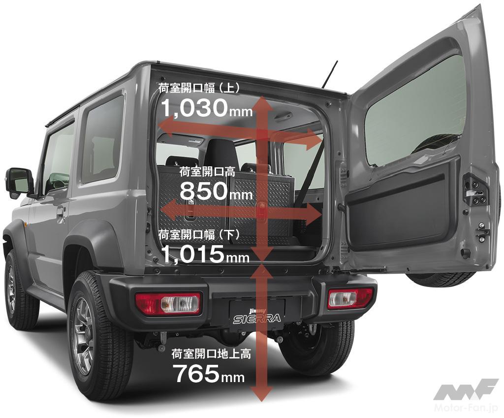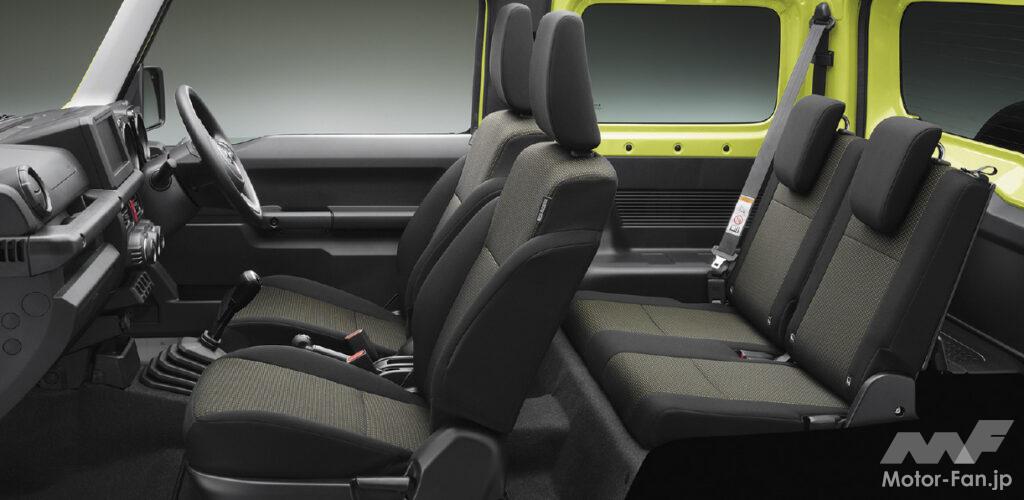 この4代目ジムニーはジムニーの伝統であるハシゴ型に組んだ頑丈なラダーフレーム構造、エンジンを縦置きに配したFRレイアウト(車両前方にエンジンを置き、後輪を駆動させる方式)、悪路走破性に優れる機械式副変速機付きパートタイム4WDシステム、一般的な乗用車の独立懸架式サスペンションに比べ、凹凸路で優れた接地性と大きな対地クリアランスが確保された3リンクリジッドアクスル式サスペンション、機能に徹した飾らない潔さを追求したデザインなどが継承されています。