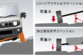 また、機械式副変速機付きパートタイム4WDシステムは路面状況に合わせて2WDと4WDとを任意に切替えて走行できることはもちろん、4WDでは4H(高速)と4L(低速)のモードに切替えが可能で、4Lは、通常の約2倍の駆動力を発揮し、急な登坂路や悪路の走破性を高めますが、4代目ではブレーキLSDトラクションコントロールを全車標準装備としたことで、4Lモード走行時、エンジントルクを落とすことなく、空転した車輪にだけブレーキをかけることでもう一方の車輪の駆動力を確保し、高い脱出性能を実現しています。