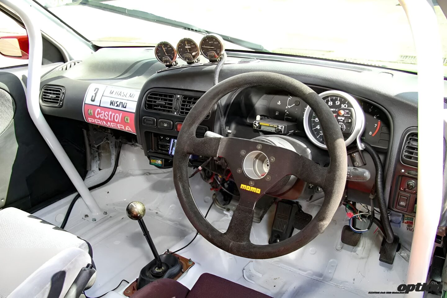 JTCC(全日本ツーリングカー選手権)の影響で、未だ根強い人気を誇るP10プリメーラ。このチューンドは、そんなJTCC参戦車両の中でもカルソニックと人気を二分したカストロール仕様のレプリカで仕上げられた1台だ。