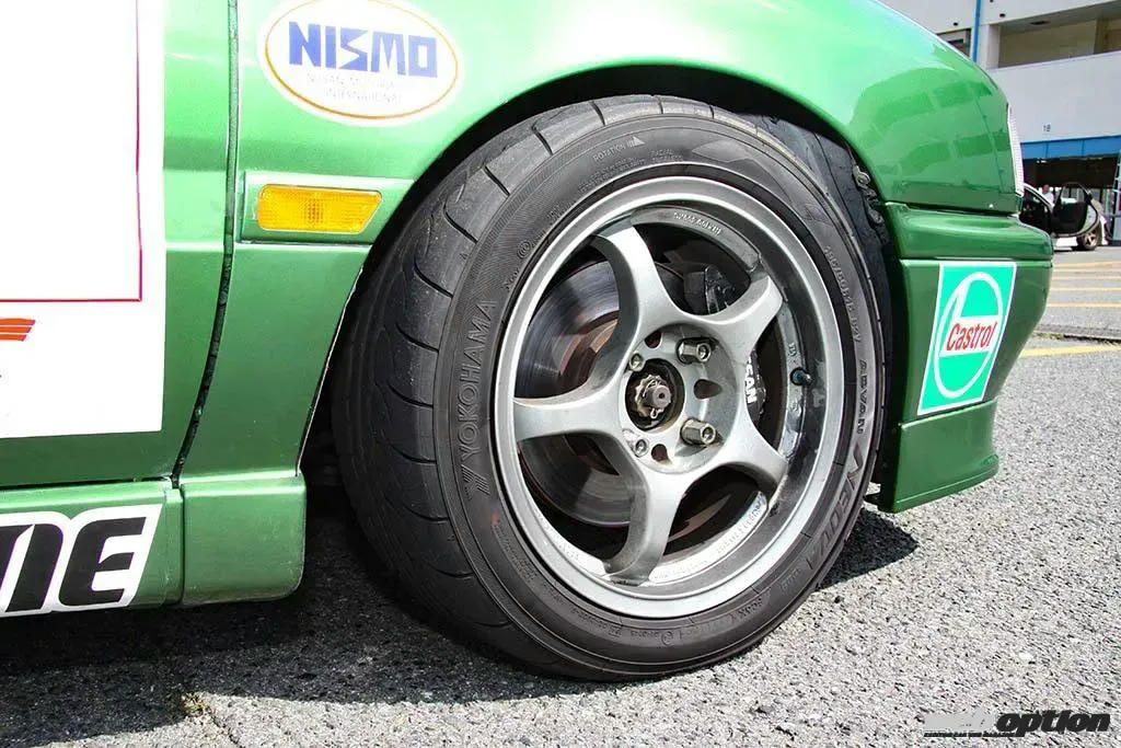 本物のJTCC仕様はNAだったが、この車両はターボ仕様のためフロントバンパーの開口部ギリギリに前置きインタークーラーを配置。実にチューンドらしい顔つきだ。