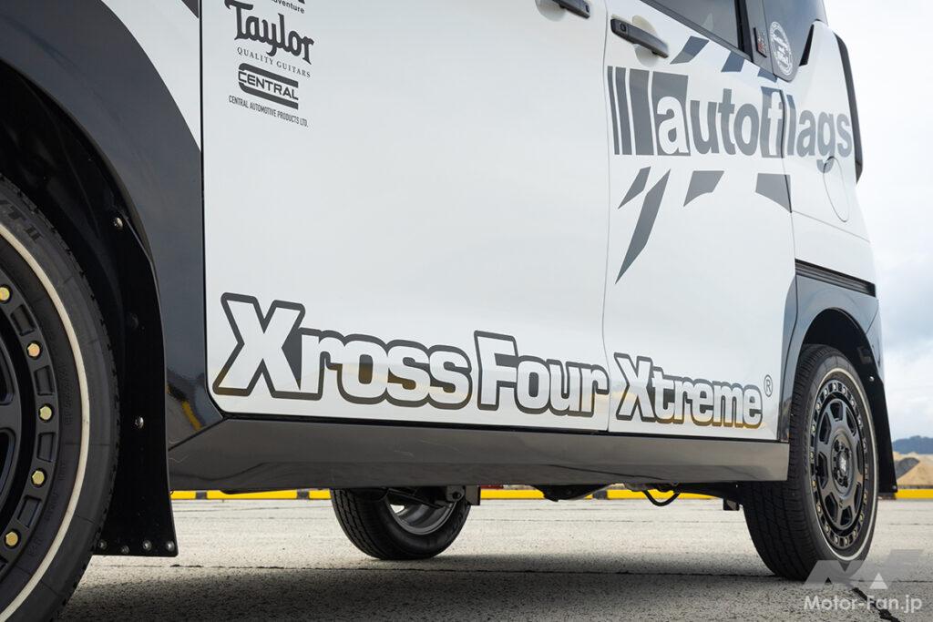 やんちゃな純正フロントマスクの表情をさらにキリッと引き締めるバンパーガード「DANSHAQ」や、軽量&低重心設計でお馴染みのバスターズMINIルーフラックに加え、30㎜のリフトアップを可能としたFlags・SP30スプリング、写真映えバツグンのX4Xサイドバナーステッカーなど、デリカのカスタマイズに長年こだわり続けて来たエキスパートとしてのノウハウをフルに活かしたカンペキな仕上がりを見せている。もちろん、いずれも取り付けに際しての車体側の加工は不要で、純正の各センサー類との干渉といった点についても確認済みなので安心。これに加え同社では現在、先日モデルチェンジが行われたばかりの新型デリカミニ用のアイテムについても急ピッチで開発が進行中とのこと。こちらも大いに期待が持てそうだ。