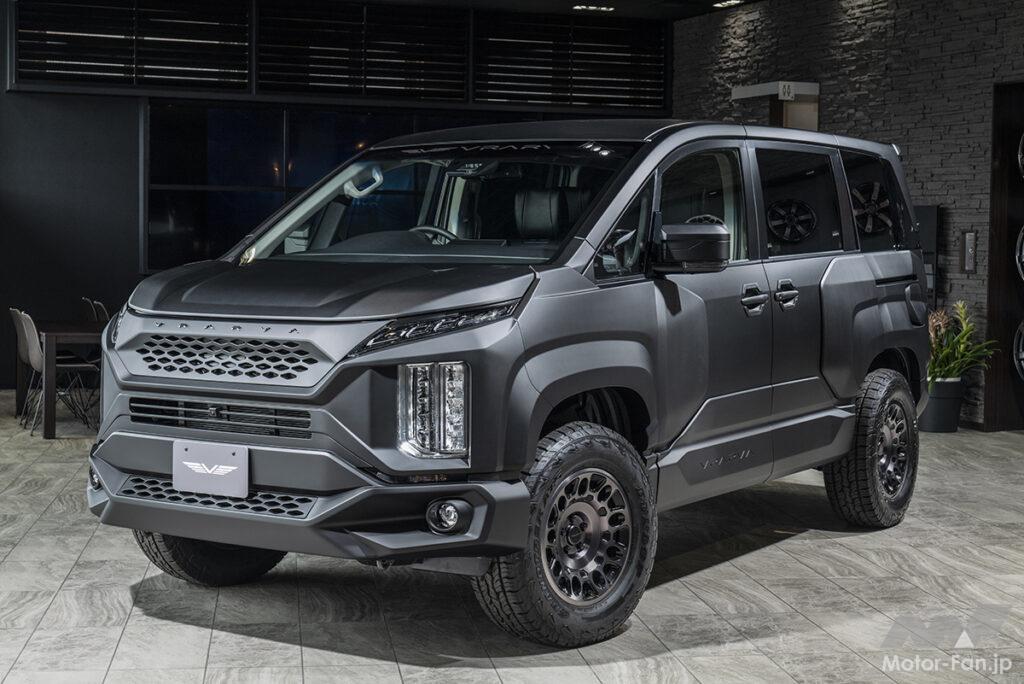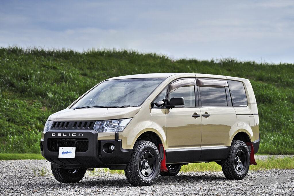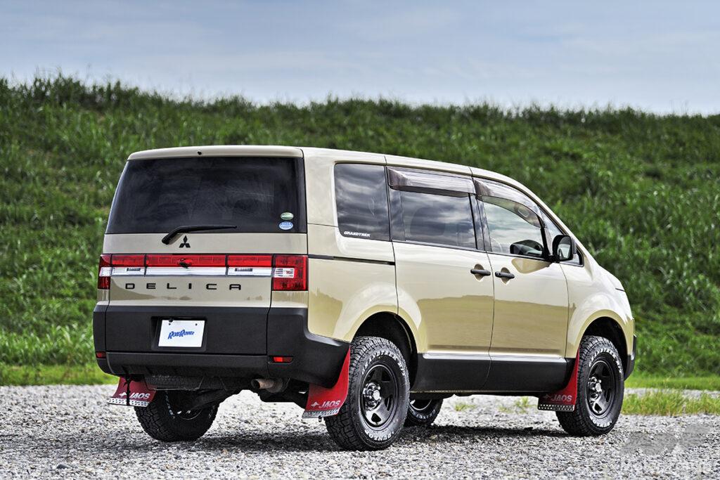 ロードランナーの作りあげたデリカD:5は、リフトアップを施したオフロード感たっぷりのスタイル。それを後押ししているのが特徴的なボディカラーと足まわりだ。ボディの大部分はアースカラーでオールペン、対してボトム部分はマットブラックで塗装している。そうすることで、よりオフロード感の強い印象へと仕上げている。