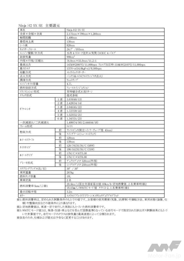 カワサキモータースジャパンは、2025年モデルの「ニンジャ H2SX SE」を発表した。価格は税込312万4000円。