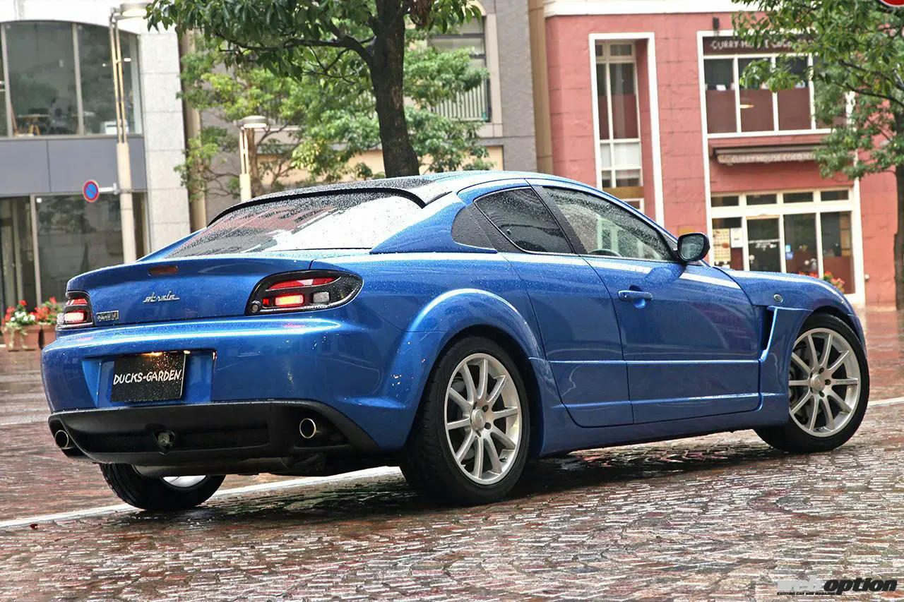 まるで欧州スポーツカーの様な雰囲気を醸し出すRX-8。製作を担当したのは、数々の独創的カスタムコンプリートをリリースしてきた茨城県の“ダックスガーデン”だ。