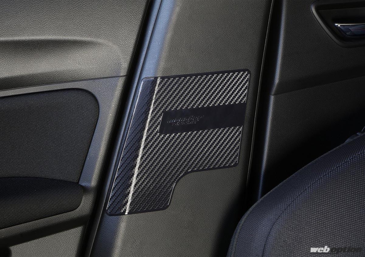 シートベルトタング部との接触によって傷が付きやすいBピラー内装をカバーするこの製品、完全専用設計のため後付け感はゼロ。高品質PVCをカーボン調で仕上げたデザインは、インテリアの高級感を大幅に高めてくれること間違いなしだ。