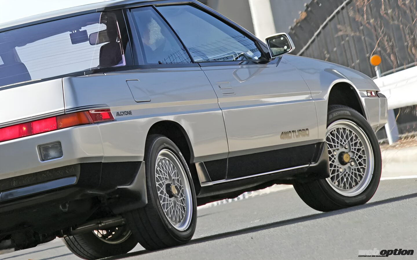 AA型レオーネベースの2ドアスペシャリティクーペとして誕生したAX型アルシオーネ。1985年6月に発売され、当初1.8Lフラット4SOHCターボのEA82型エンジンを載せる4WDモデルVRターボ(AX7)と、FFモデルVSターボ(AX4)の2グレードで展開した。