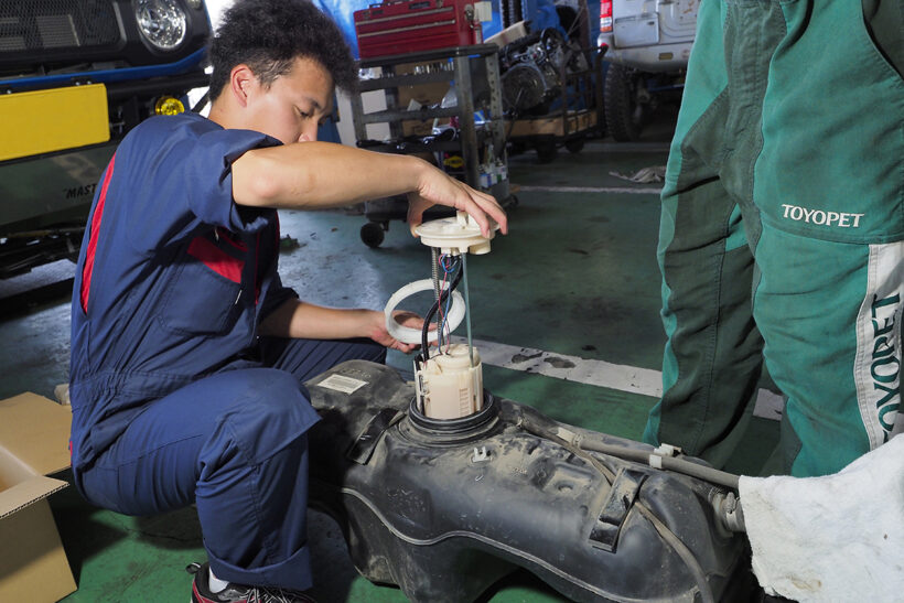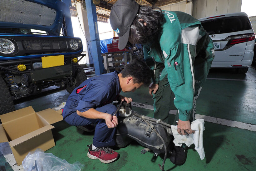DIY・メンテナンス 最悪はエンジンブローも!?【ジムニーメンテナンス講座】走行距離10万キロを超えたら燃料ポンプの交換を!【写真・15枚目】 かなり高価な特殊工具が必要となる。足が2本、3本の社外品もあるが、交換を経験した人に聞くと超やりにくいそう。持っているプロに頼むべきだ。 燃料ポンプはアッセンブリーパーツとなる。これに、蓋のパッキンが必要。専用の特殊工具まで揃えようとすると10万円コースとなるのだ。 触媒 O2 センサー クロカン系4駆全般を専門にカスタムを行う全国区での老舗ショップ&メーカー。ジムニーに関してもかなり詳しく、様々なモデルのオリジナルパーツ開発を行ってきた。最新のジムニーノマドの開発も日本最速の早さを誇る。 店長の奥原氏は、オンロードからオフロードまでジムニーを熟知したチューナーとして名前が全国的に認知されている人物なのだ。 この画像の記事を読む