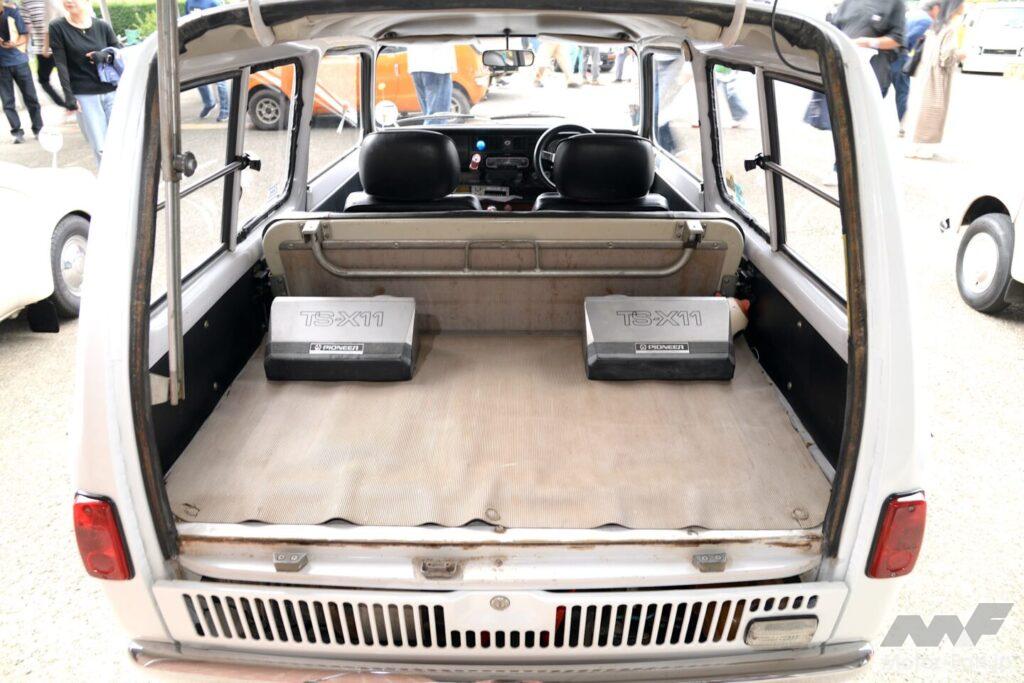 スバルR-2といえば特別珍しいクルマではないと思われるだろう。ところが展示されていたのは珍しい商用車のバン。スバルR-2が発売されたのは1969年のことであり、バンはその翌年に追加された。すでに当時の日本は高度経済成長の真っ只中。庶民の志向も軽自動車から1リッター前後の大衆車へと移っており、ライトバンについても同様の傾向があった。昭和の時代にライトバンといえば個人商店などに人気で平日は仕事の足に、休日には行楽にという使われ方が多かった。だから70年代に向けてライトバン人気は軽自動車から大衆車モデルへと移り変わりゆく時期でもあった。