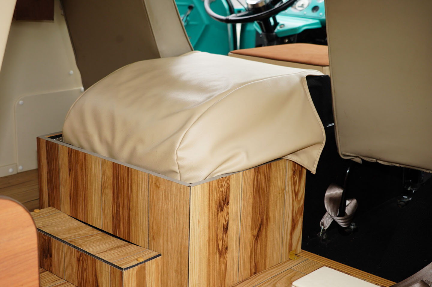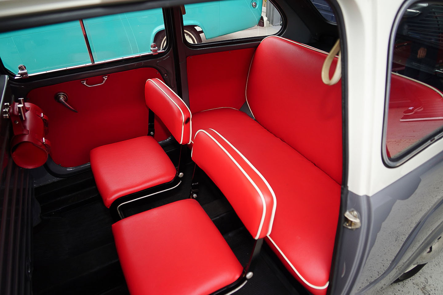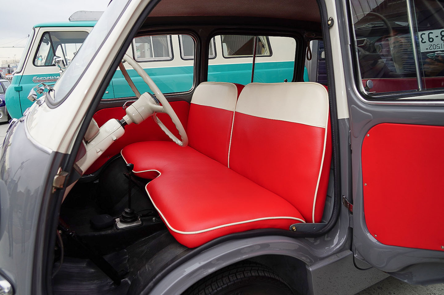 ただし、この個体のエンジンは633cc、20psのノーマルではない。フィアット850クーペに搭載されるエンジンをベースに940ccまでボアアップしたものを搭載。キャブレターはウェーバーで、都内での流れ(ジュニアさんは現在の拠点は東京だそう)でも問題ないよう、中低速を重視したセッティングながら、100〜120km/h巡航でも問題なくクルージングできるよう仕上げたという。