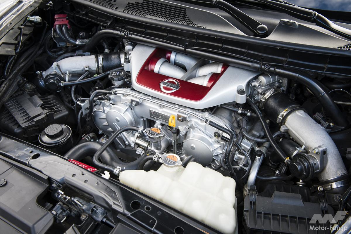 ロールケージを組み込んで剛性をアップしたボディにGT-Rの3.8ℓV6ツインターボ、VR38DETT型を詰め込んだ。パワースペックは492ps。GT-Rと同じくトランスアクスルで、6速ギヤボックスはトランクフロアの下。もちろん、4WDである。最高速度257km/h、0-100km/h加速は3.7秒という「クレージー」なSUVだった。なんといっても、オリジナルのジュークは1.6ℓ直4ターボで214ps/250Nmなのだから、デビュー当初のスペックとはいえ、GT-Rのエンジンは、2倍以上パワフルなのだ。