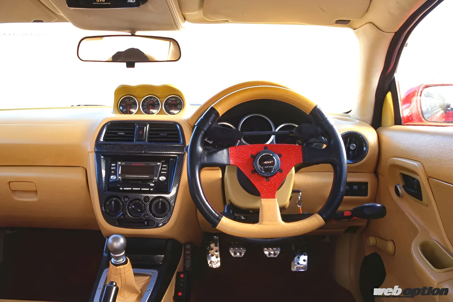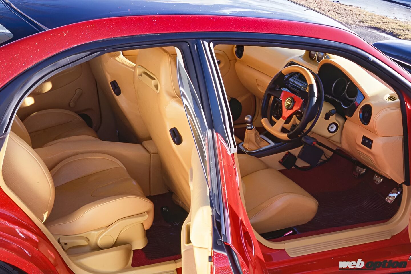 まさかメーカーがこんなものを作るなんて…。その生い立ちまで含め、見れば見るほど不思議なチューンドだ。よくアメ車などで目にするチョップドルーフは、Aピラーの傾斜をさらに寝かせるというもの。多くの場合は運転席を下げることで視界の確保が可能だが、4ドアセダンのGDBではそうはいかない。