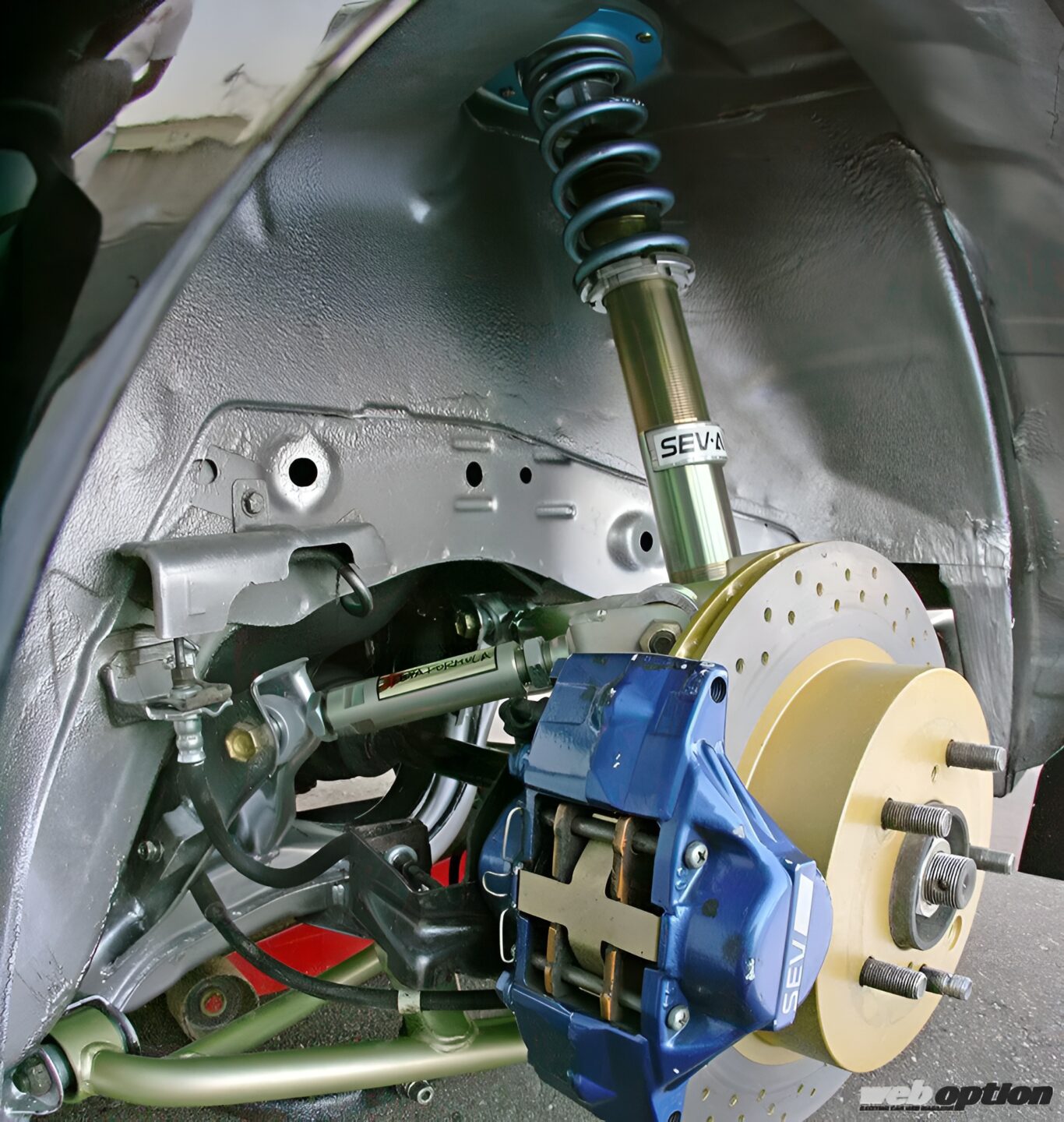 目立たない箇所も、例えばタイヤを外すとインナーフェンダーがシルバーで塗装されていたり、ナックルがバフ掛けされていたりと、細部にまで手が行き届いている。こうした細部の作り込みが全体的な完成度を高めるポイントとなっているのだろう。