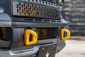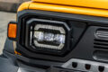 ジムニーシエラ&ジムニーノマド専用のフェイスチェンジキットは、4WDならではの精悍さと都会的なスタイリッシュさを併せ持つデザインが魅力で、複雑な造形でありながら純正ボデイに違和感なく溶け込むよう仕立てられている。パーツ構成はフロントグリル、フロントバンパー、そしてヘッドライトが一体となる構成で、街中で走るクルマを正面から見かけたら、ジムニーとは思えないワイルドを打ち出している。特に八角形仕様のヘッドライトは、3連プロジェクターとコの字型のポジションランプを内蔵しており、強力な目ヂカラで圧倒的な存在感を放っている。
