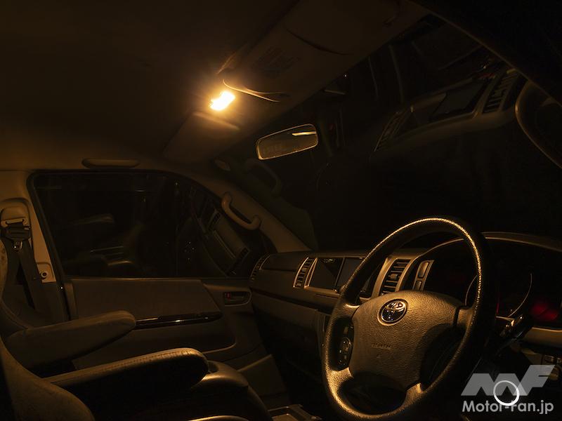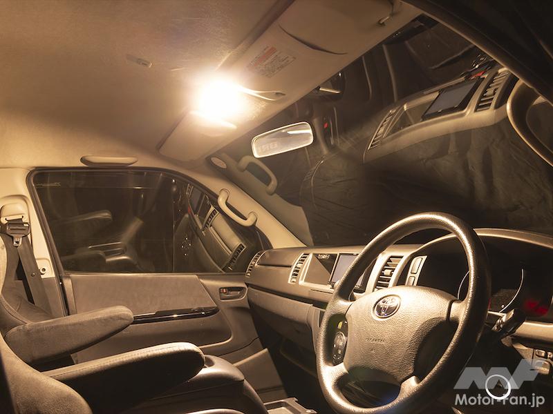 室内をくっきり照らす「白色」、電球色に近い色味で温かみのある「暖色」、そして見やすさを重視した「白色+暖色」の3パターンが用意されており、ON/OFFスイッチの設定コマンド操作によって点灯色記憶させ、シチュエーションに合わせて好みの色を点灯させる仕組み。さらにオプション設定される「ジュエルルームランプ&インナーリフレクター」を同時装着すれば、点灯時の美しさはさらに向上。特殊カットされたレンズに光が反射・拡散されることで、美しい光を放つ設計となっている。今回ハイエースの他、プロボックス専用モデルもラインアップ。商用車では味気なかった室内の光を一気にアップデート可能だ。