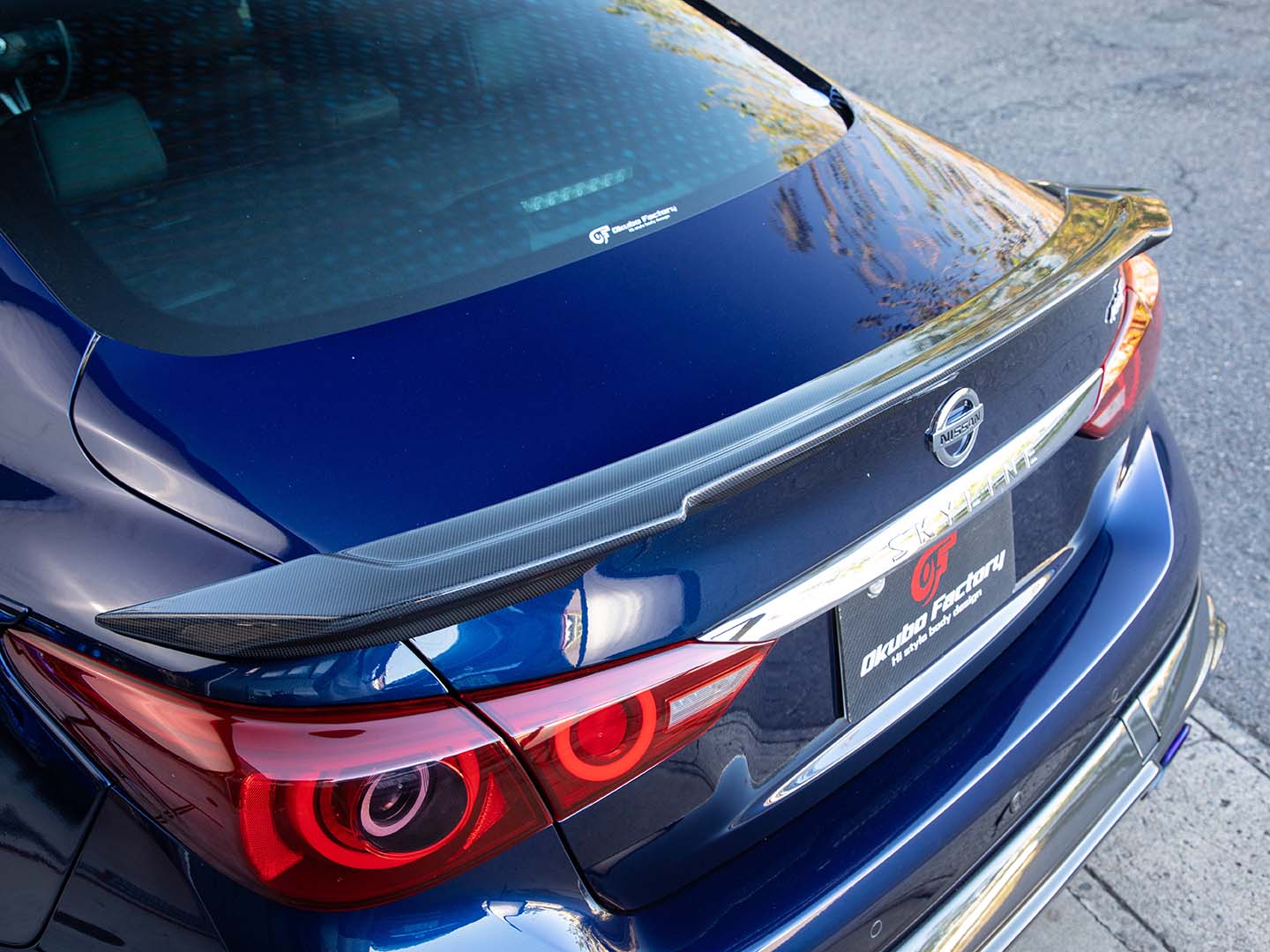 4ドアGT-R制作で培ったノウハウを活かし、機能性とスタイリングを両立したオオクボファクトリーの渾身作。もちろんRV37全グレード(400Rも対応)に装着可能で、スポーティなRV37スカイラインを求めるオーナーに必見のアイテムだ。