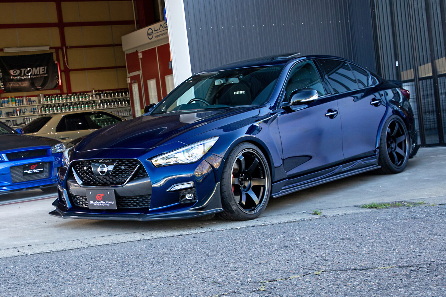 徐々にパワーチューンへの道が開けつつあるRV37型スカイライン。しかし、走りを支えるボディキットの選択肢はまだ少ないのが現状だ。そんな中、RV37に向けて積極的なエアロパーツ開発を続けているのが、R34の4ドアGT-R製作で知られる“オオクボファクトリー”だ。