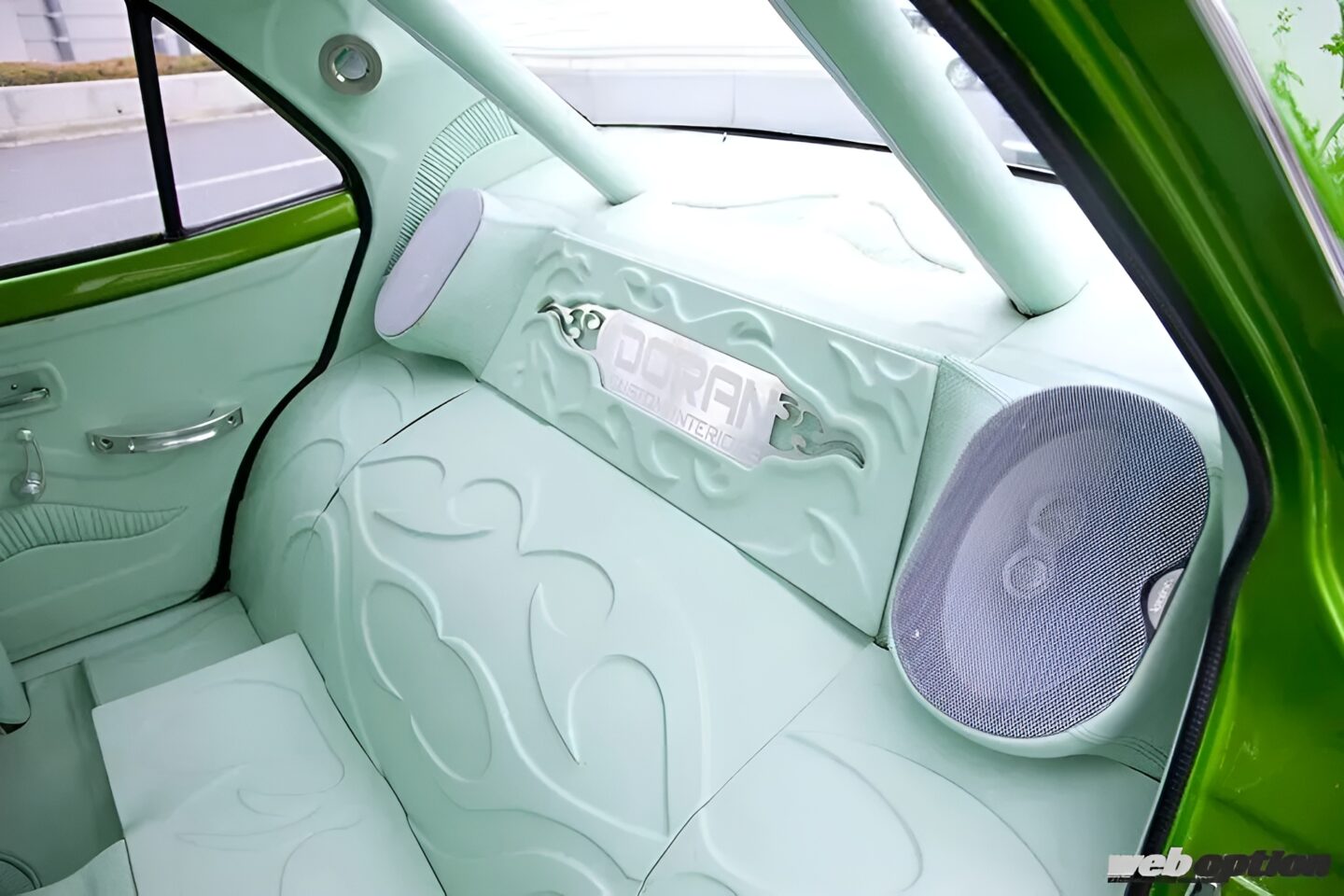内装のメイキングも凄まじいの一言。ダッシュボードから内装パネル類に至る全てのパートをリメイクし、RX-3の面影を一切感じさせない近未来的な空間を演出。カスタムオーディオも徹底され、とてもドラッグスペシャルとは思えないクオリティだ。