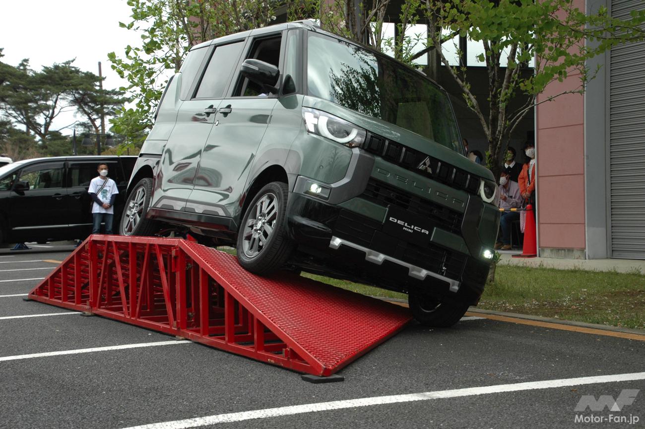 なお、この傾斜は20度に設定されているのだが、デリカミニは43度まで耐えられるという。