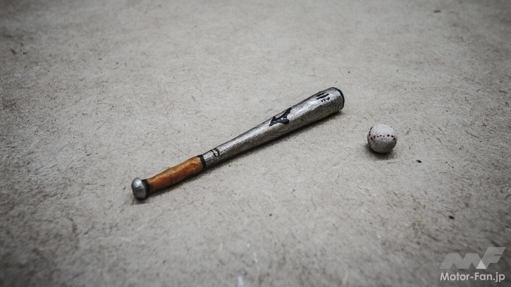 どうも! PAPAN部長は本職そっちのけで魅せプラモ作りに励んでますが、今回は作品を引き立たせる小物作りに迫ってみます。上の写真は前回にて、ガラスの割れ具合を紹介しましたが、今回はその割れの原因を作ったバットとボール、そして赤コーンの作り方です。きっと王道の作り方はあるのでしょうが、なんせ部長は独学です。仕上がりが良ければ良いわけで。