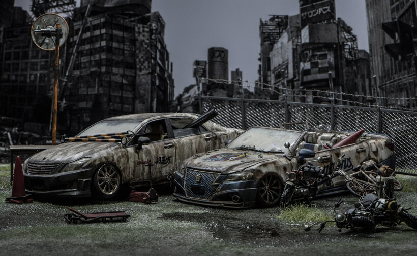 DIY・メンテナンス 単純な合成画像じゃない! 街の荒廃模様やサビまみれの放置車両、非現実感を作り出すのが楽しい【連載・魅せプラモ部 Vol.10】【写真・5枚目】 PAPAN部長 スタイルワゴンをはじめ、様々なクルマ雑誌で活躍する大阪在住酒好きクルマ好き楽しいこと好きなプロカメラマン。なぜかミニ四駆のタトゥーを入れている。現在の愛車は1993年式のUSトヨタ・ハイラックス。放置車両の撮影がライフワーク。写真集「STILL ALIVE」発刊や個展なども開催する。 作品の全景。2台の放置車両クラウンと背景の荒廃した渋谷が絶妙にマッチしてます。現実的にはあり得ない風景がPC画面なら作れるんですね。 作品の全景。2台の放置車両クラウンと背景の荒廃した渋谷が絶妙にマッチしてます。現実的にはあり得ない風景がPC画面なら作れるんですね。 この画像の記事を読む