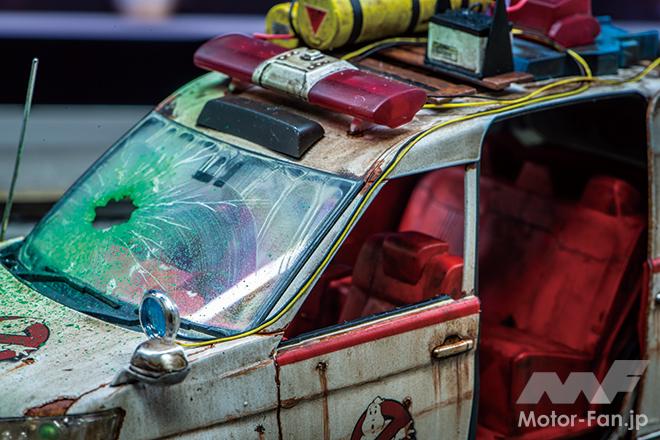 DIY・メンテナンス 使わなかったプラモデルの小物が役立ちます! ルーフのガスタンクやバッテリーは未使用品を流用【連載・魅せプラモ部 Vol.13】【写真・4枚目】 PAPAN部長 スタイルワゴンをはじめ、様々なクルマ雑誌で活躍する大阪在住酒好きクルマ好き楽しいこと好きなプロカメラマン。なぜかミニ四駆のタトゥーを入れている。現在の愛車は1993年式のUSトヨタ・ハイラックス。放置車両の撮影がライフワーク。写真集「STILL ALIVE」発刊や個展なども開催する。 ルーフのガスタンクやバッテリーはフジミ模型のガレージ&ツール NO.15の部品、パトランプはアオシマのパトカーパーツを流用。 ルーフの機器類を繋ぐ配線は、本物の配線コードを使用。プラモ部品で補完できない場合は、別素材を使うアイデアも必要です。 PAPAN部長の作品の多くはガラスが良く割れてますが、このECTO-1も同様。リアル感を生み出すヒビの具合など流石です。 劇中に登場するキャデラックのECTO-1の内装は黒ですが、PAPAN作品はなぜか真っ赤。本人曰く白いキャデは赤内装というイメージだそうです。 この画像の記事を読む