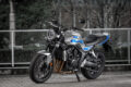 シルバーのボディに、ネイビーとブルーのラインが引かれた“スペンサーカラー”(ウルフシルバーメタリック・ブルーストライプ)などで、目を惹くCB1000Fだが、こうした作り込みによって“エフ”らしさが構築されている。