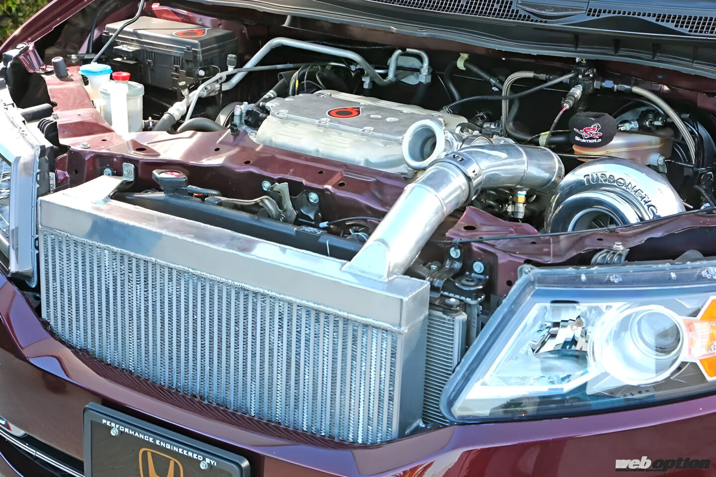 細部を見ていく。エンジン本体はJ35A型がベースだが、腰下はARIASのローコンプ鍛造ピストンを軸に徹底強化。ヘッドもオリジナルのハイカムやメタルガスケット等を組み込みながら、高出力に対応できるパワーユニットを作り上げた。ミッションはアキュラTLの6速MTをドッキングしている。