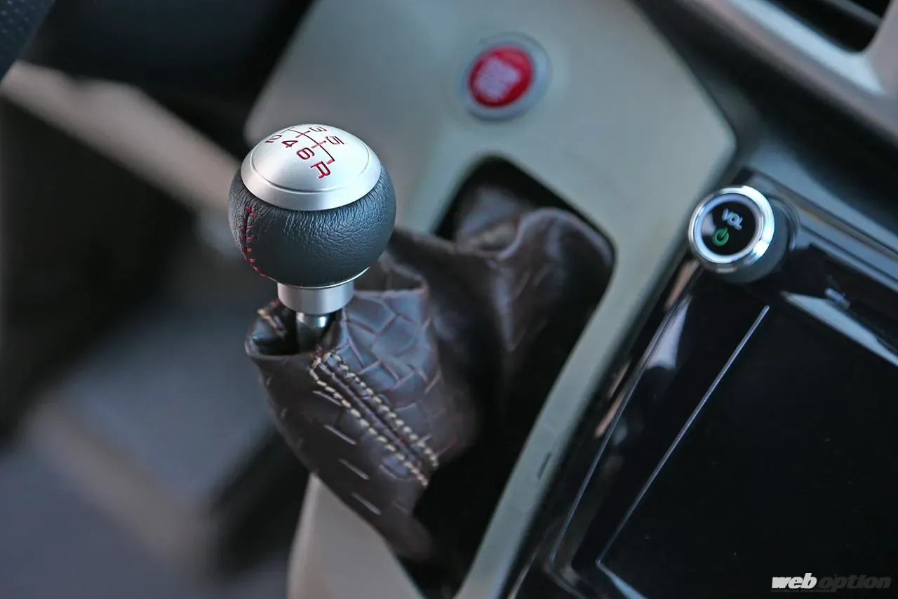 6速MT換装に伴い、シフト周辺は綺麗にアレンジ。メーターパネルもリメイクし、レースパックのデジタルダッシュをスマートにインストールしている。