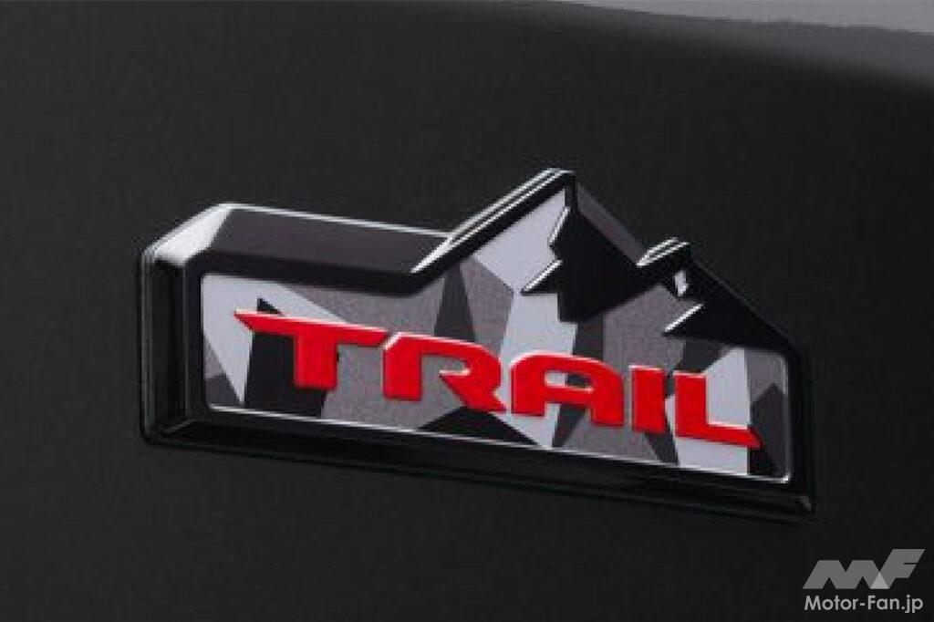 また、リヤにはカモフラージュ柄にレッドの「TRAIL」文字が際立つ専用バッジを装着し、落ち着いたブラック&グレーの装いにレッドのアクセントの効いた、個性的なデザインを実現した。