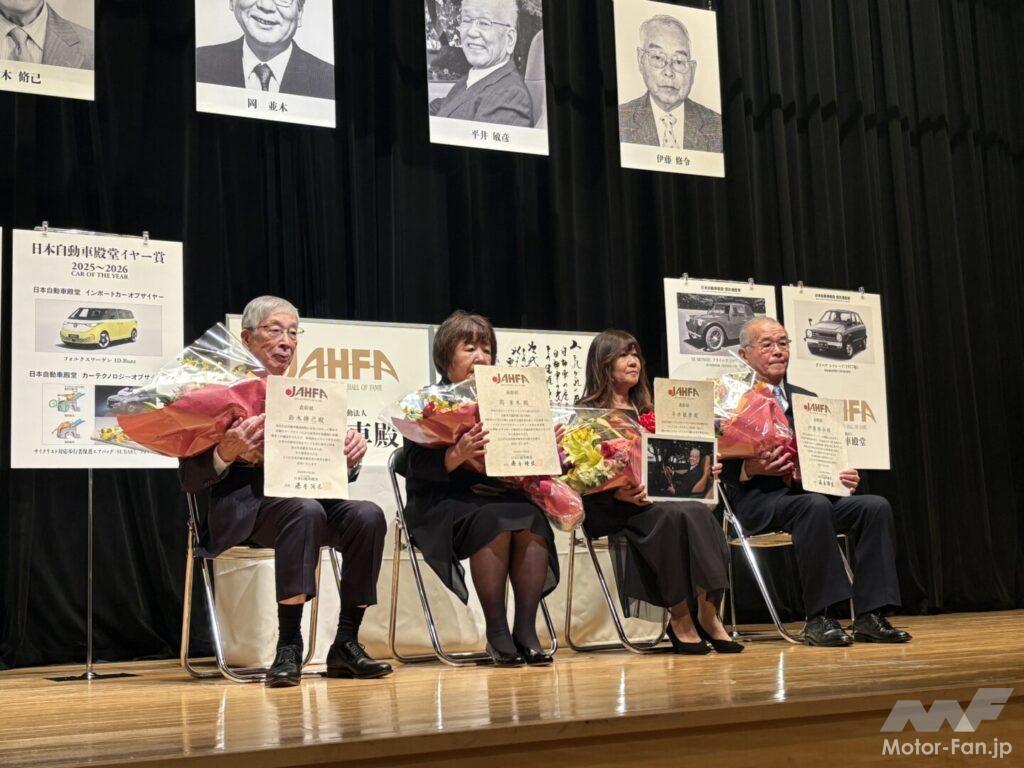 加えて、2025日本自動車殿堂 歴史遺産車は、SUMINOEフライングフェザー(1954年)、UDトラックス ミンセイ6TW12(1960年)、ダイハツ・初代シャレード(1077年)に決定。2025〜2026 日本自動車殿堂イヤー賞は、カーオブザイヤーがホンダN-ONE e:および開発グループ、インポートカーオブザやーがフォルクスワーゲンID.Buzzおよびインポーター、カーデザインオブザイヤーが、ホンダ・プレリュードおよびデザイングループ、カーテクノロジーオブザイヤーがサイクリスト対応歩行者保護エアバッグ:SUBARUフォレスターおよび開発グループに決定した。