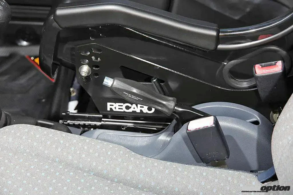 インテリアも拘り満載だ。ドライバーズシートはスパルタンなレカロRMSで、エンジン換装に伴ってフロント側に移動したシフト位置とバランスさせている。