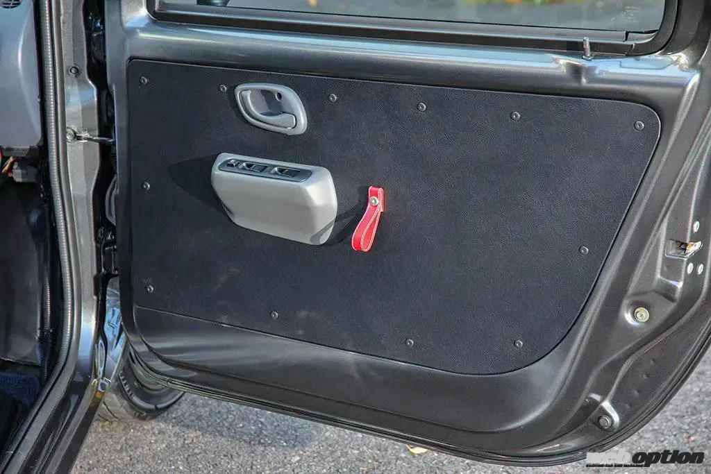 サスペンションは、ブリッツのダンパーZZ-R(ワゴンR用)をベースに、リヤにストロークアップ加工を施したスペシャル。流用装着3セット目にして、ようやく理想のスペックが実現できたという。ちなみに、撮影日は降雪シーズンに備えて車高を若干アップした状態だった。