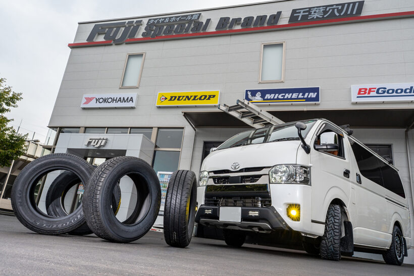 パーツ(カスタム) 荷物を安全に運ぶ「頑丈さ」が重要です! 『ハイエース』に最適なタイヤ選びのポイントをプロが解説【写真・2枚目】 タイヤ&ホイール館 フジ スペシャルブランド 千葉穴川店 15インチ 純正と同サイズ(195/80)ということもあり、見た目を変えながらも操作性やコストをキープしやすい。ビジネスユースの比率が大きい場合はここから入ることも検討を。 16&17インチ 走りと見た目のバランスが取れた、ドレスアップバンで最も人気が高いゾーン。今回紹介する4モデルを始め選択肢が豊富なので、選びやすさというメリットもある。 18インチ 偏平率が下がってホイールの存在感が増してくるため、スタイルアップが一気に進む。イベントに参加するなど、カスタムにより前向きなユーザーの支持を集める。 磯崎マネージャー ハイエースに最適なタイヤ選びをアドバイスしてくれた磯崎さん。 京葉道路・穴川I.C.のほど近く、国道16号線沿いに位置しアクセス抜群の千葉穴川店。2025年10月3日にリニューアルオープンを果たし、ホイールやタイヤの展示品や在庫の規模を拡大し実物を見てもらいやすくするなど、さらにユーザーのメリットを広げた。■千葉県千葉市稲毛区園生町444-10 ☎︎043-253-5550 ■営業時間:11:00~19:30(平日)、10:00~18:30(土曜日・日曜日・祝日) ■店休日:無休 ■https://www.fujicorporation.com この画像の記事を読む