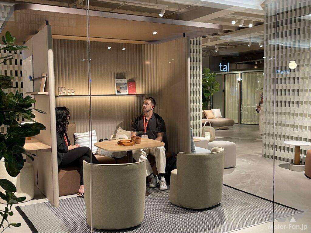 This “sense of well-being” is expressed in design through roundness, generosity, and stability in both form and CMF design. What I feel every time at this show is that office design is spatial design—while individual pieces of furniture as products are central, they are ultimately part of a space, and what’s important is creating the overall atmosphere and character of that entire space as a unified design. If we become fixated only on superficial elements like individual shapes, colors, and material details, we miss the crucial overall atmosphere of the space. Office spaces are functional spaces for working, thinking, and discussing, and now there’s an added requirement for emotional support for people’s mental and physical well-being. The way the overall impression (atmosphere) that creates the space becomes crucial. Isn’t this also true for vehicle interior spaces?