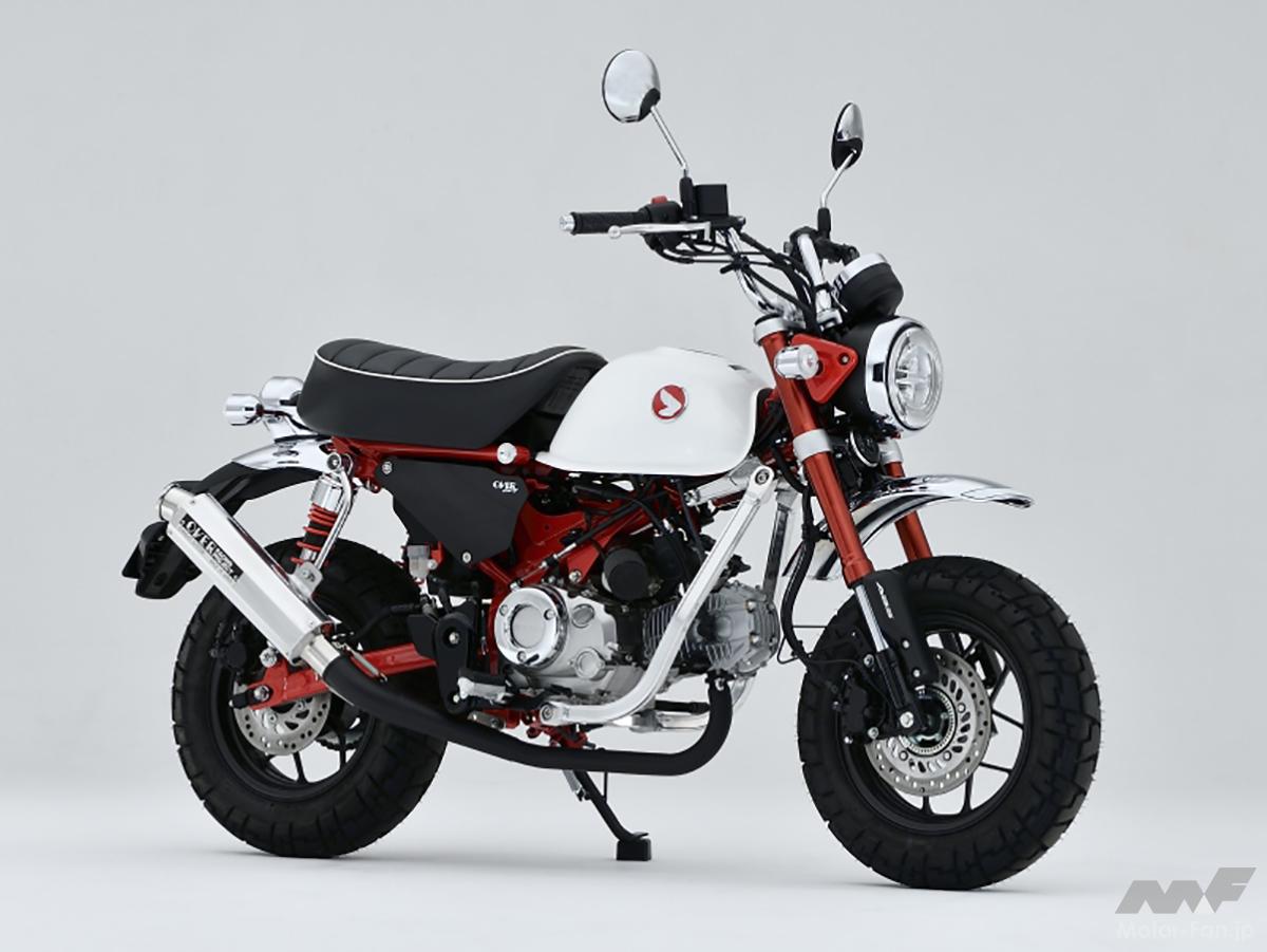 マフラー重量はノーマル(約5.2kg)の半分以下! OVERレーシングのホンダ・モンキー125カスタマイズ|東京モーターサイクルショー20222022年にモンキー125は初のモデルチェンジを受け、エンジンをロングストルーク化して出力特性を変更するとともにマニュアル5速ミッションを採用。さらに進化を遂げたモンキー125をベースに、老舗の人気バイクパーツメーカー・OVERレーシングが自社パーツを駆使してカスタマイズ。 PHOTO/REPORT●北 秀昭(KITA Hideaki) オーヴァーレーシングプロジェクツ https://www.over.co.jp/