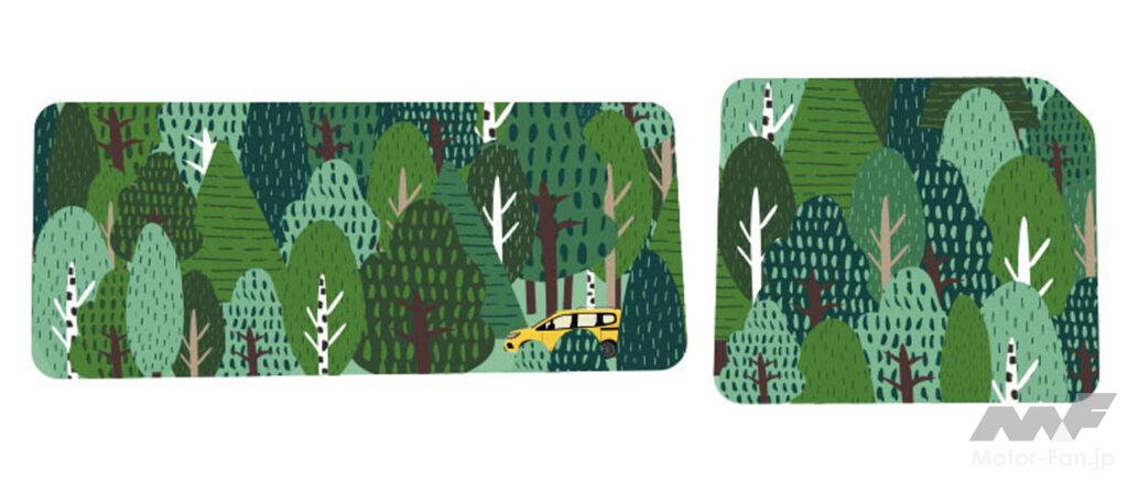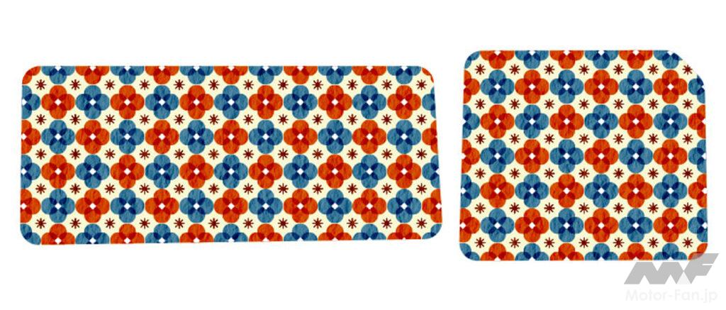 「カングーデコパネル」は、このカングーの最大の特徴であるダブルバックドアのインナーパネルを楽しく個性的に彩る専用ステッカー。10種類のデザインから好みのデザインが選べる。