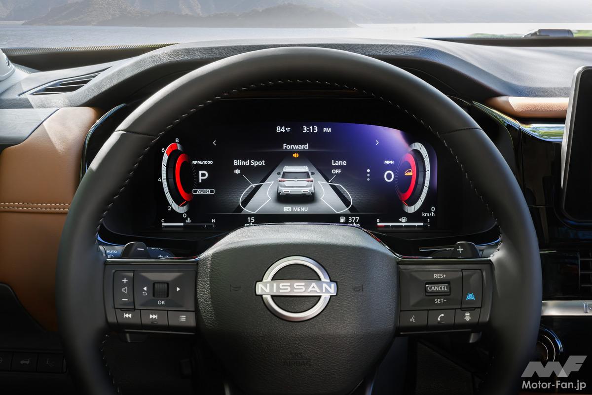 新型2026年式パスファインダーは、実績ある応答性の高い3.5リッターV6エンジンを搭載。最高出力284馬力、最大トルク351Nmを発揮する。9速オートマチックトランスミッションにはパドルシフトが装備される。インテリジェント4×4搭載モデルには、7つのドライブモードを選択可能なロータリー式ドライブモードセレクターが装備される。