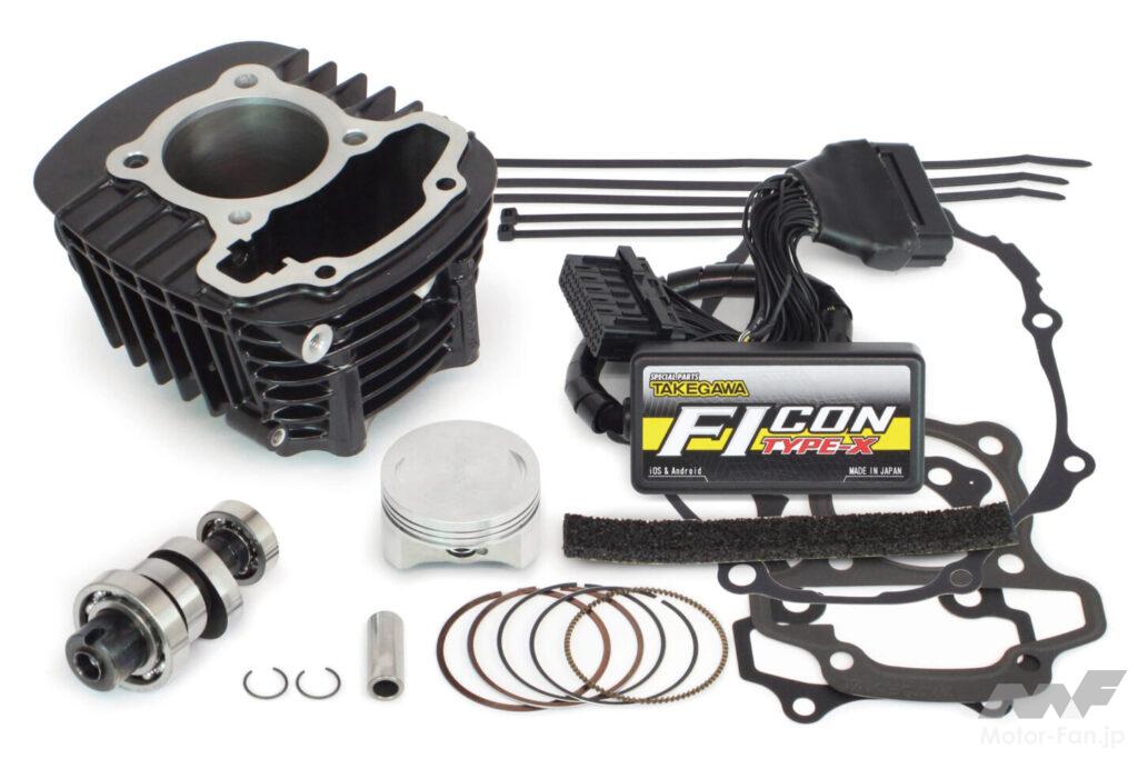 シリンダーとピストンの変更で、排気量をノーマルの124ccから145ccに変更可能。FIコン TYPE-X(インジェクションコントローラー)と同時装着することで、ノーマルとは異なるトルクフルな出力特性を実現。シリンダー本体はアルミ製で、鉄スリーブを圧入済み。