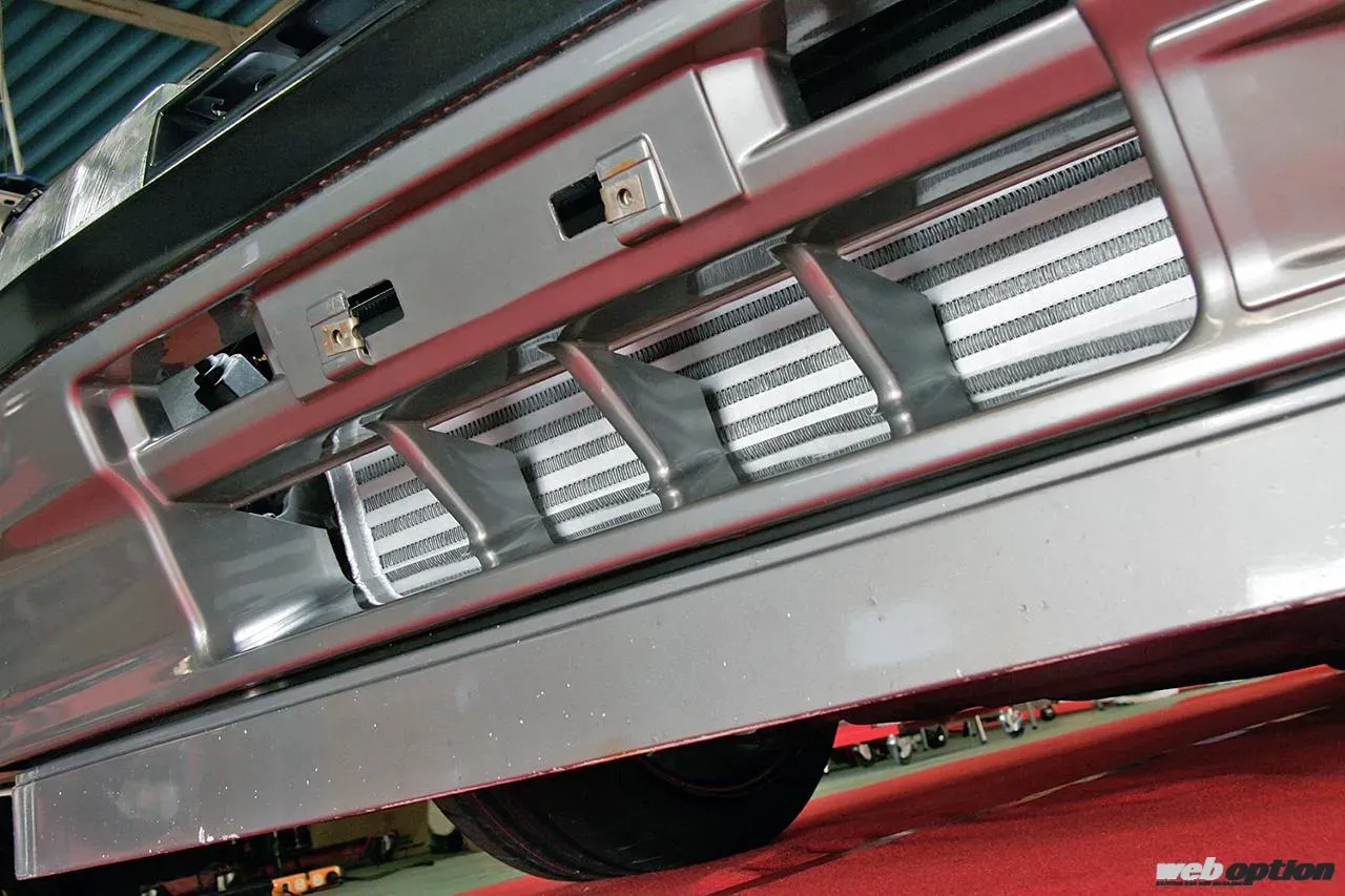 冷却系では、コア&パイピングとモーターが干渉するため、前置きインタークーラーにするとGTオートスポイラーが使えなくなる…というのがR31乗りの常識。
