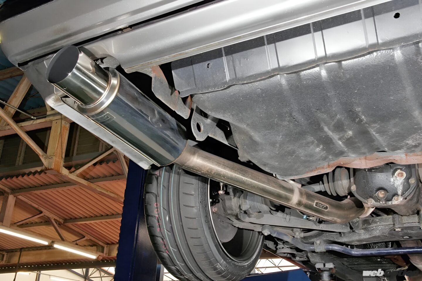 柿本レーシングと共同で開発した柿本コラボ(チタン改)マフラーを装着。メインパイプ径は76φでパイーンEXマニ、フロントパイプと合わせて官能的なエキゾーストサウンドを実現する。