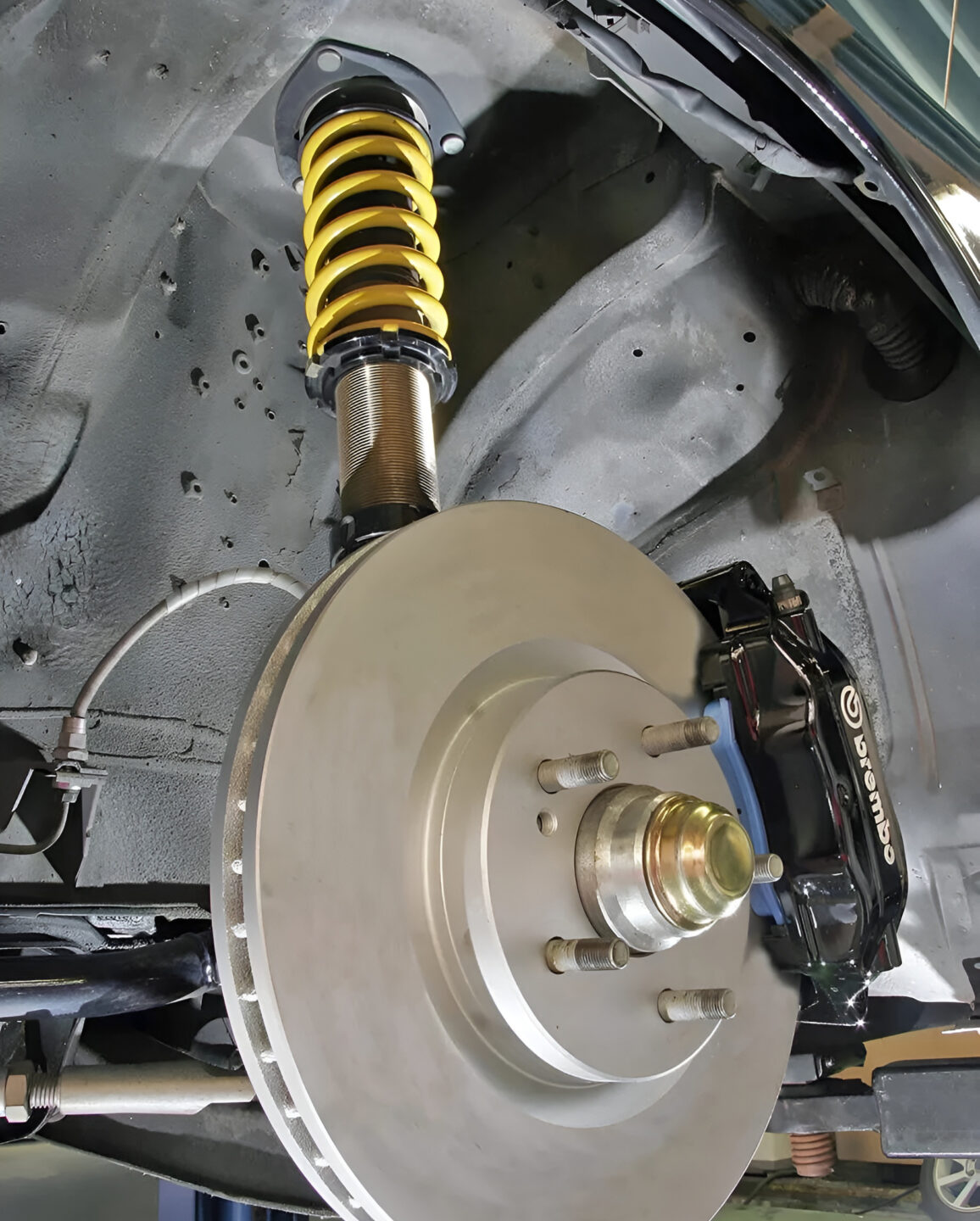 足回りには、エンドレスジールとの共同開発品になる車高調がセットされる。バネレートは標準のフロント8kg/mm、リヤ6kg/mm。また、ハブの5穴化を図った上で、前後ともBCNR33純正ブレンボキャリパー+ディクセルローターでブレーキを強化。