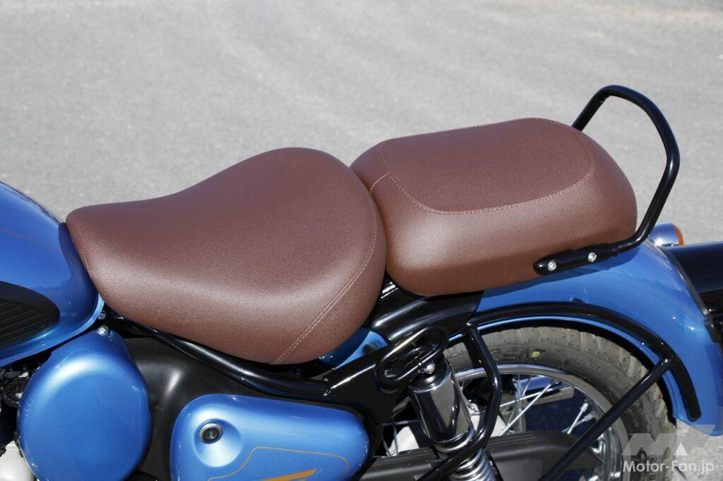 ここで改めてクラシック350を眺めてみます。鋼管製ダブルクレードルフレームに直立型空冷4ストローク単気筒の組み合わせは、それだけで60年代のバイクを彷彿させます。さらにタンクパッド装備のティアドロップタンク、ディープフェンダー、カバードタイプのフロントフォークなどがクラシックムードを高めています。車体を構成するパーツ一つひとつが美しく仕上げられ、個性を主張していて、結果的にそれらがまとまって存在感を高めているように思えます。
